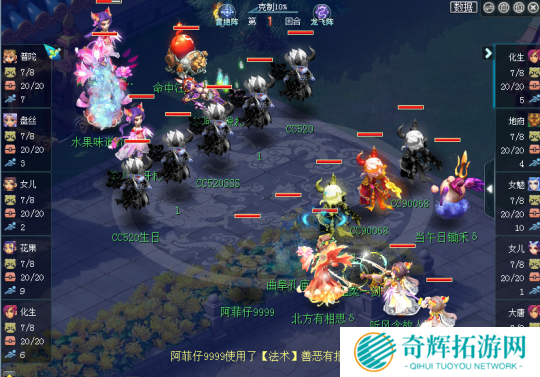 对战方生日快乐阵容:女儿、盘丝、化生、咒师、花果 雷阵双封咒师花果