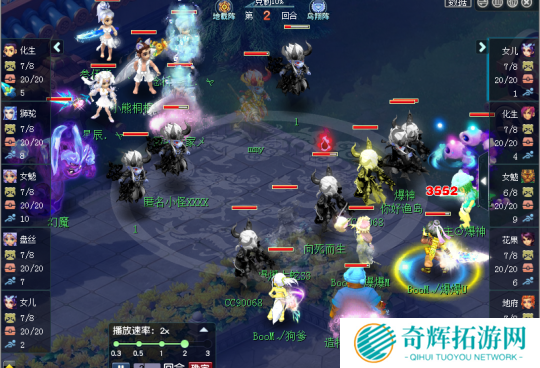 38回合,生日快乐再次使用谛听海冲刺,一连拉出3只谛听并加上战笛,但是也仅仅是秒倒了女儿和大唐而已,而抗住了这一波输出之后,生日快乐女儿、盘丝、化生寺的宝宝所剩无几。场上也找不到能卡血拉人的宝宝,给了曲阜孔庙极佳的点杀时机,随着大唐巨剑点倒对战方花果山,女魃墓的幻魔再也没有单位可以清走,于是就可以拉出小怨灵无限群秒。弹尽粮绝的生日快乐无力回天,最终53回合被击败。