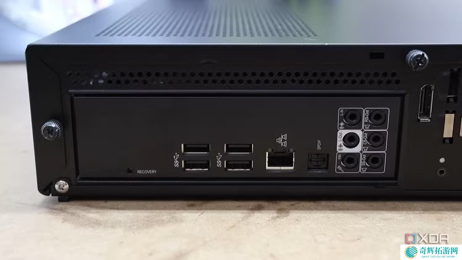 而在I/O方面,本站获悉该机正面配备两个 USB-A 接口和一个 USB-C 接口,其中USB-C接口支持通过 VirtualLink 技术连接eGPU外置显卡;机身背面则配备4个 USB-A接口、1个 RJ45网口、3个 DP接口、1个HDMI接口。