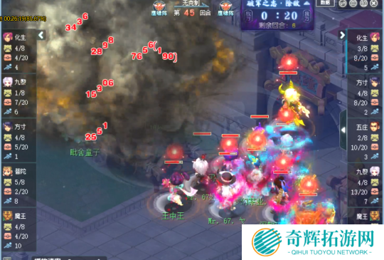 45回合,钓鱼岛秘传飞沙走石秒出1W5伤害双杀,紫禁城方寸最后一次使用慈航普度,钓鱼岛立刻封印化生阻止其回复,九黎和加上了战神宝典的魔王火力全开,依次封杀紫禁城人物,最终53回合,紫禁城弹尽粮绝,钓鱼岛成功拿下一分。