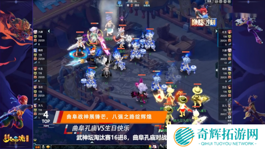 第26回合,曲阜孔庙以牙还牙点杀生日快乐九黎。生日快乐换出逆境解除小死亡后反手击杀曲阜孔庙九黎,双方围绕九黎城疯狂点杀。第34回合,曲阜孔庙换出超级鲲鹏击倒生日快乐九黎。生日快乐误将天地同寿加给五庄,被迫用乾坤挪移来移除,错失先手。第39回合,曲阜孔庙乾坤挪移驱散天地同寿并成功点倒生日快乐,将其延长。曲阜孔庙趁机换出多只谛听冲刺,此时曲阜孔庙九黎城多次还阳后伤害爆炸,连招出手双杀生日快乐五庄女儿。最终在51回合,曲阜孔庙成功清场,晋级八强。