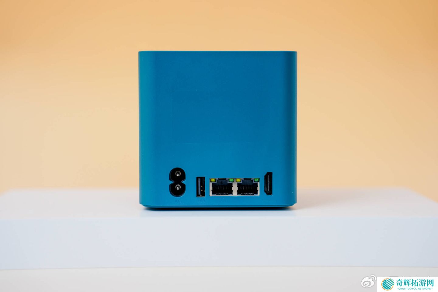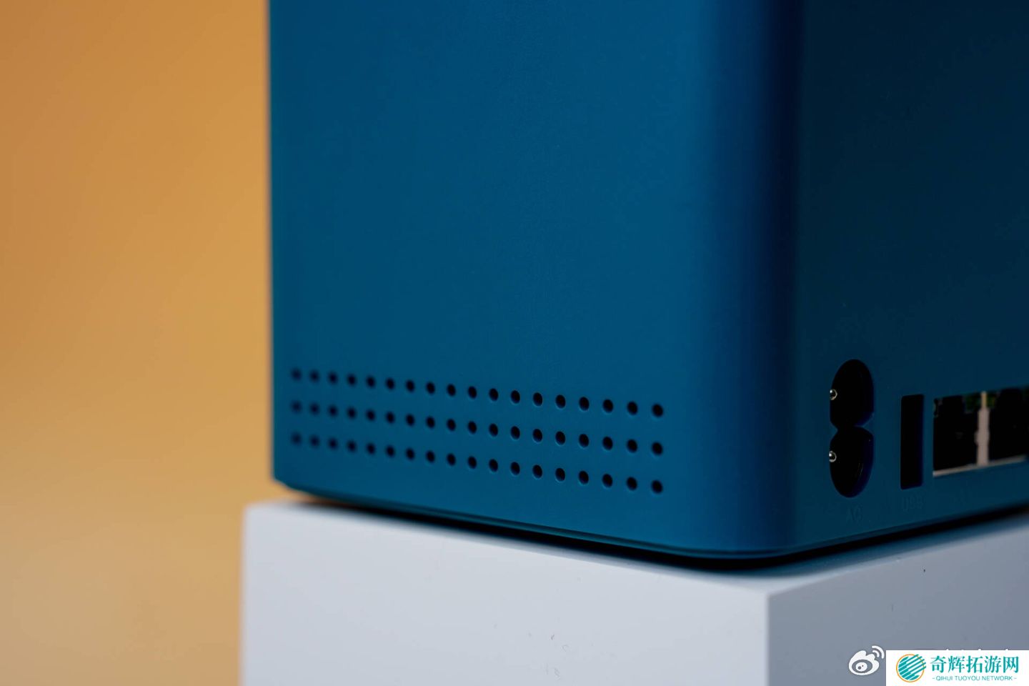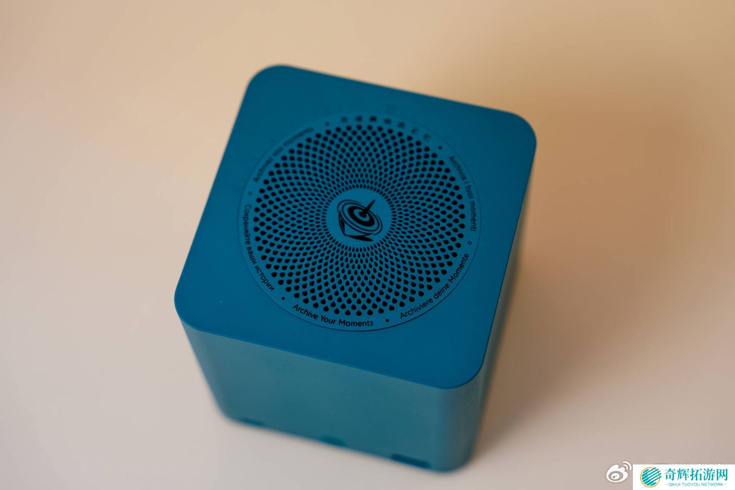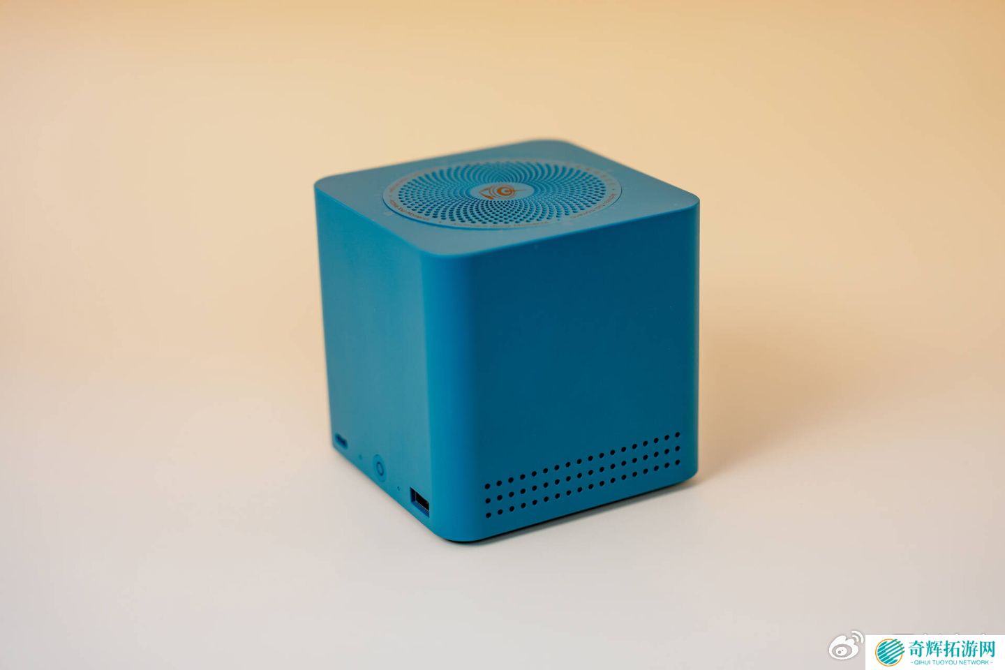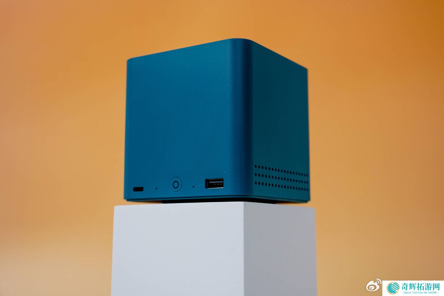 这款小主机采用了内置电源设计,尺寸为 99×99×98.3mm,重约 730 克,提供珍珠白、孔雀蓝、暗夜灰三种配色。