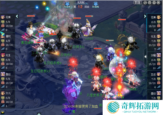 对战方生日快乐阵容:女儿、盘丝、华山、花果、咒师 风阵双封