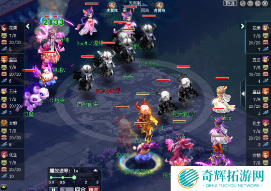 对战方紫禁城:五庄、盘丝、化生、花果、女魃 虎阵