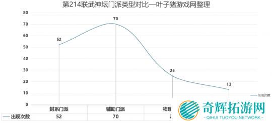从门派类型来看,封系门派和辅助门派的出现次数非常多,占比高达76.25%。这就意味着,大多数服务器依然采用“以稳为主”的阵容策略,会选用咒师普陀替换一个传统输出的方式构建阵容。