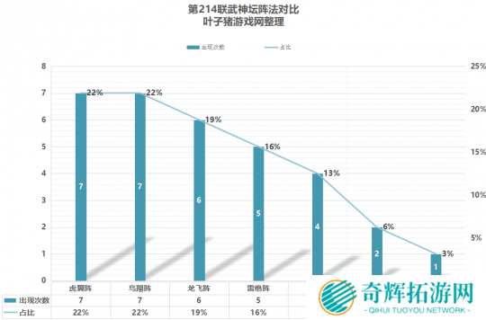 本届武神坛中,阵法情况有了明显的变化。其中,虎翼阵、鸟翔阵、龙飞阵的出现次数占据前三,这也是多封阵容、国标点杀阵容相互对抗时的常用阵法。值得一提的是,调整后的雷绝阵凭借“咒师普陀”的强势表现,出场率有了明显增加。