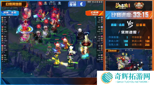 逍遥永恒深知击杀能力不如对手,就将全部成员化整为零,采用耐属性、楚楚可怜套、带高血隐身宠等方式增加自身的生存能力。开赛之初就冲上了幻雪阁高地,并以迅雷不及掩耳之势掩护主力队伍将旗子拿下。虽然幻雪阁队伍迅速回防,但对方大量的单人玩家早就做好准备,硬生生拖住30秒,使得旗子成功被交回逍遥永恒,就此拿到夺旗比赛中的最大优势。