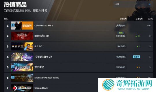 击败一众对手,《刺客信条:影》现已居于Steam热销榜付费游戏中的首位。上一期的Steam周销榜冠军《R.E.P.O.》,光速败下阵来只能屈居第二。