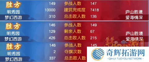 从周六竞技环节来看,【梦幻西游】帮派中有不少强力队伍,他们凭借极强的击杀实力不断摧毁【爱海情深】的防线。虽然【爱海情深】靠着出色的凝聚力尽力防守,但在绝对的力量面前,也只能算是竭尽全力了。不过,他们已经创造了属于自己帮派的最好成绩,值得大家点赞!