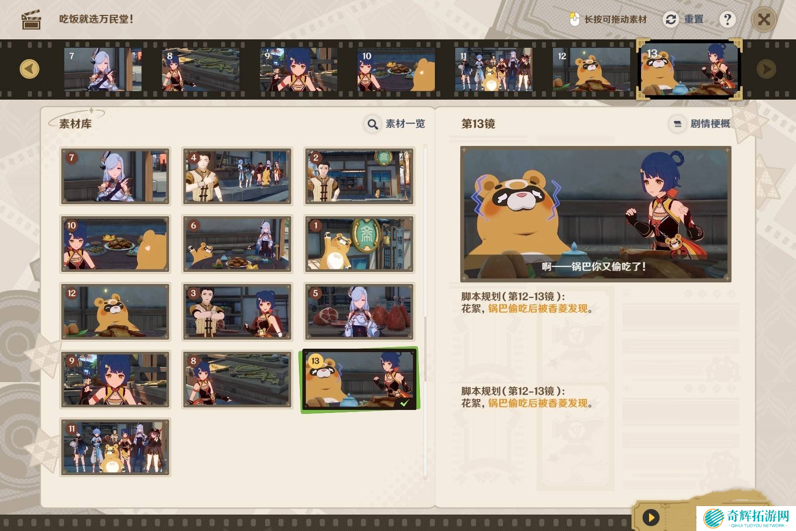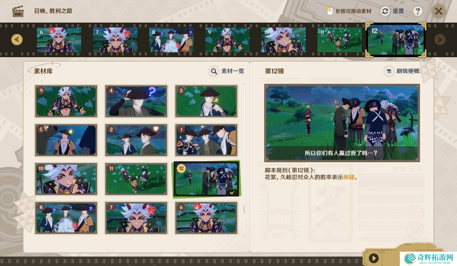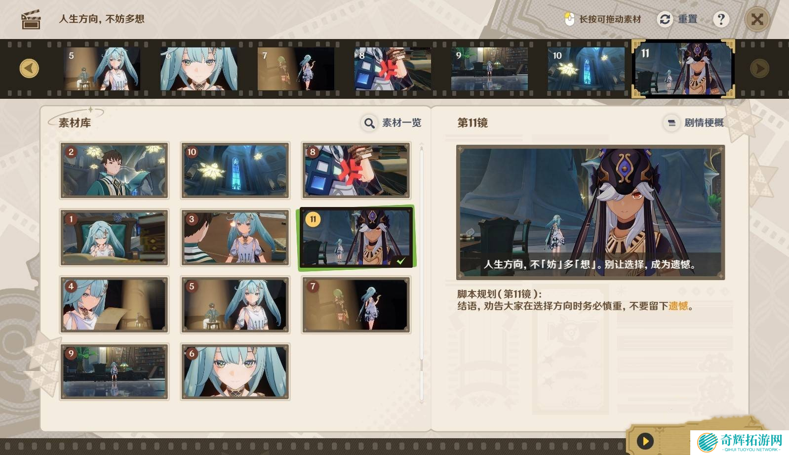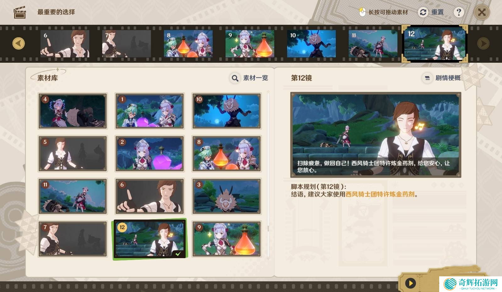 旅行者需根据活动提供的脚本选择合适的镜头素材进行剪辑。