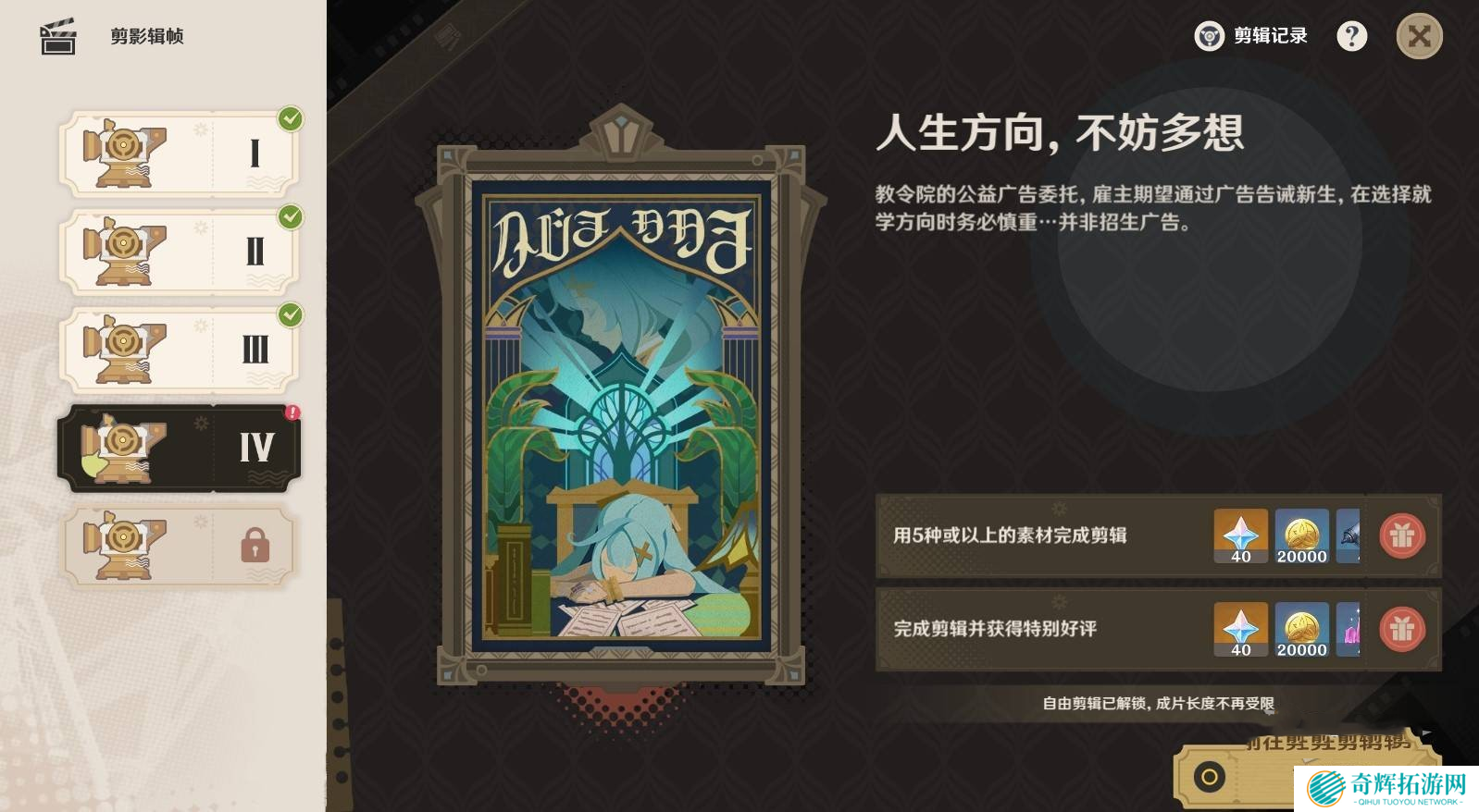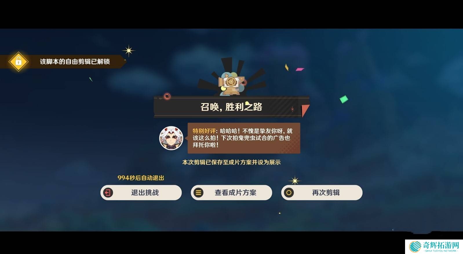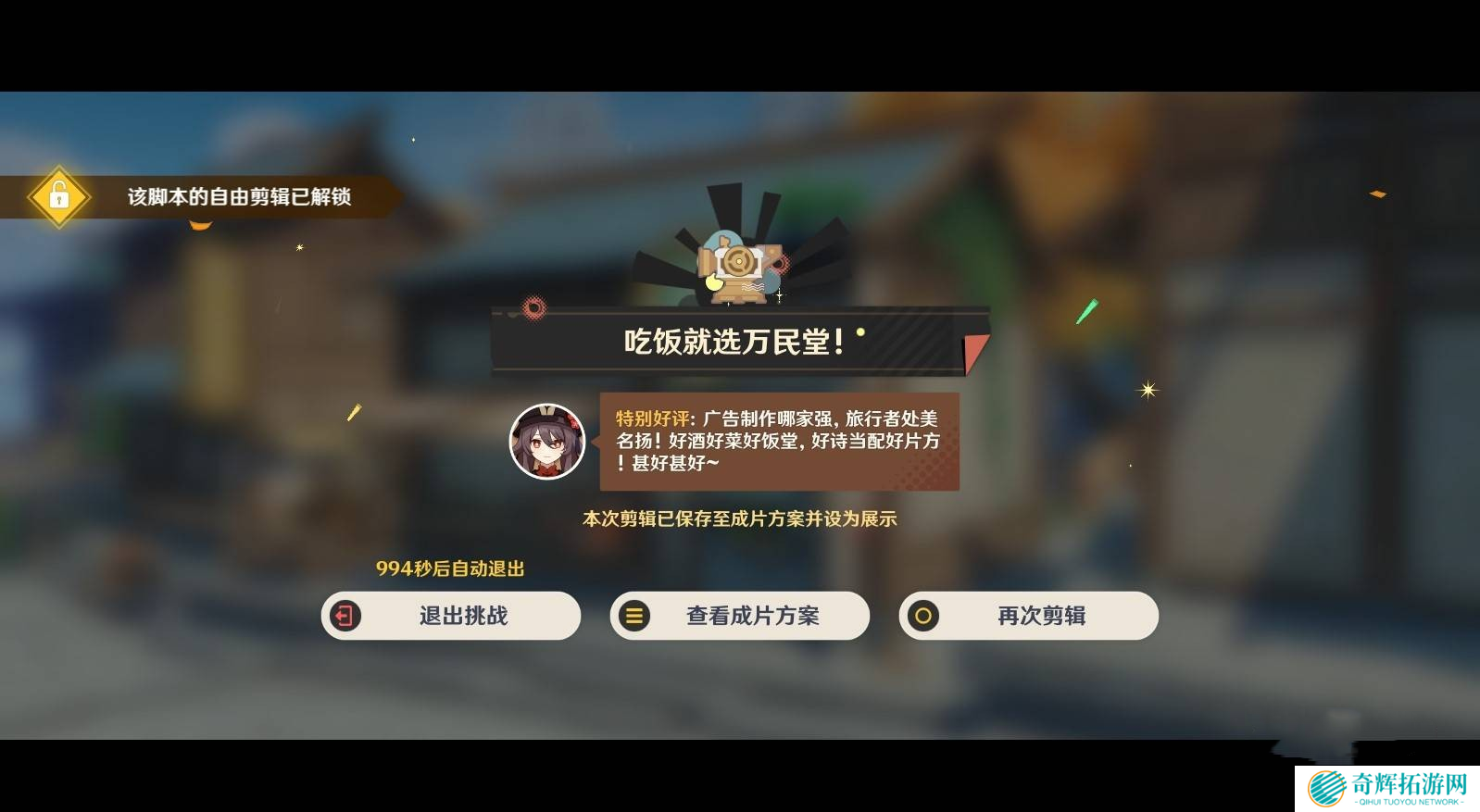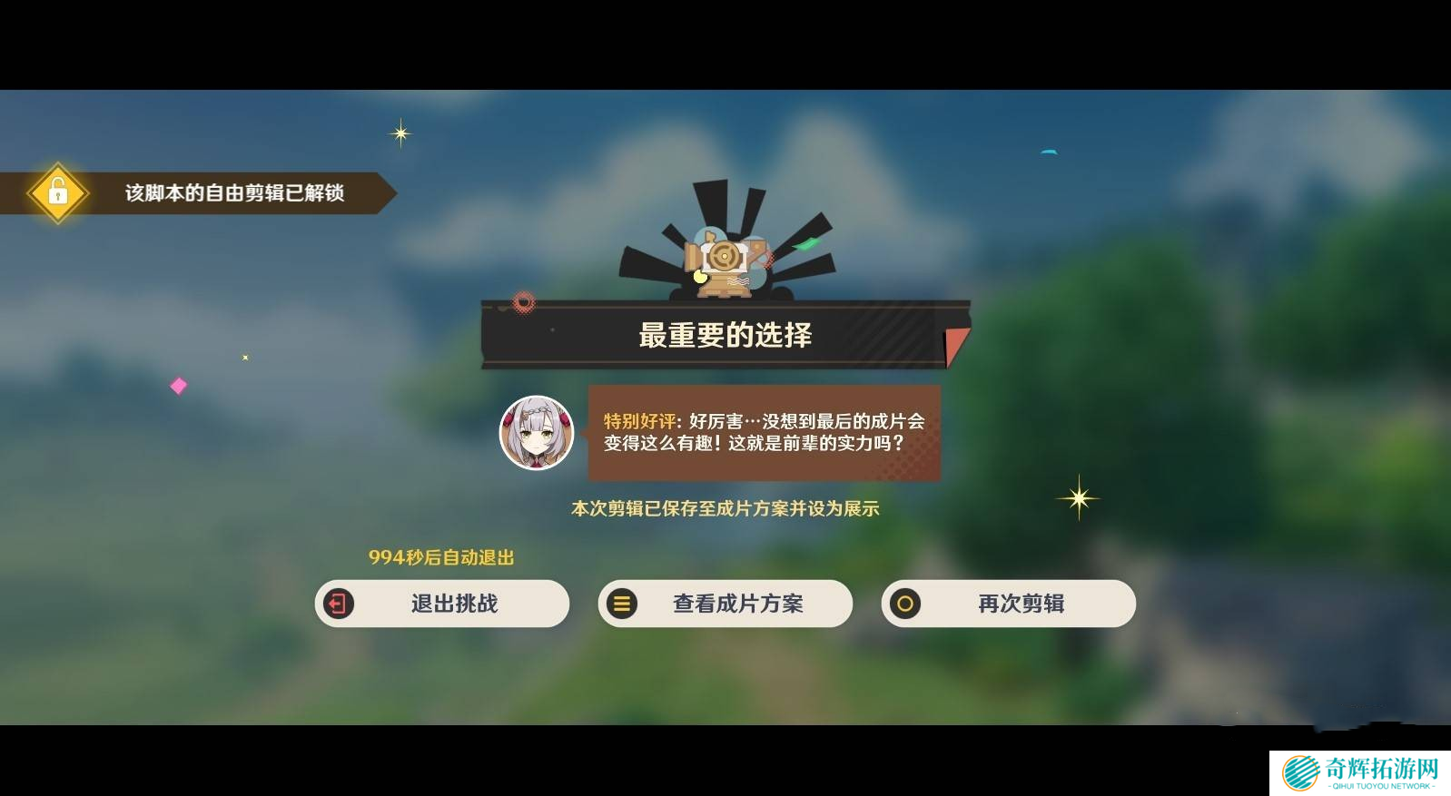当旅行者成功获得特别好评后,即可不受脚本限制进行自由剪辑。