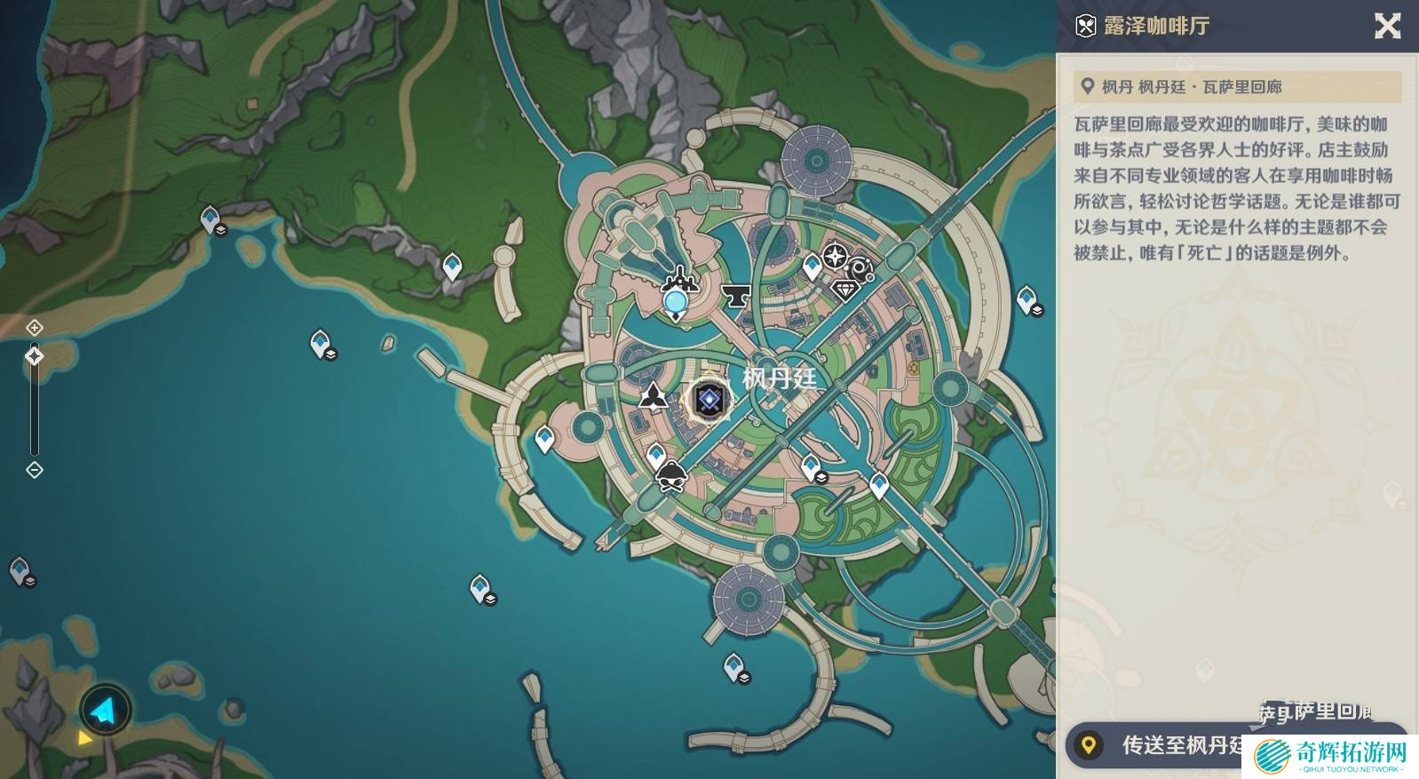 1、前往枫丹廷,传送至露泽咖啡厅。