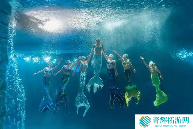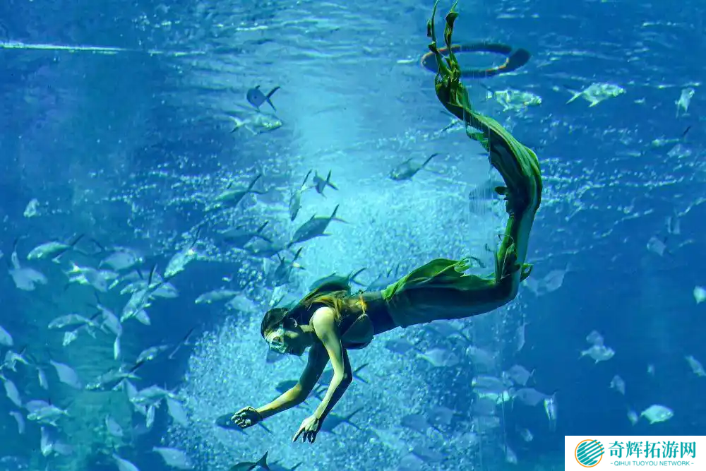 2、美人鱼表演融合了花样游泳、自由潜水、舞蹈和音乐等多种元素,表演者不仅要有超强的肺活量,还要在水下完成各种优雅动作,对体能和表演技巧要求都非常高。