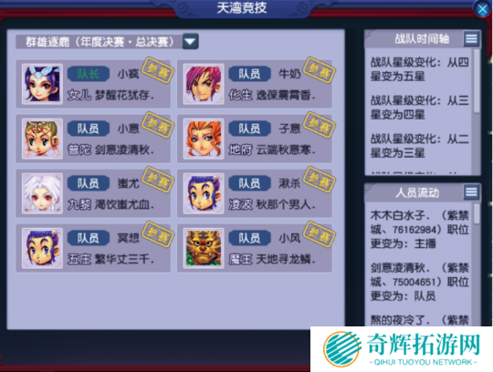 天湾竞技的报名阵容为:女儿、化生、普陀、地府、九黎、凌波、五庄、魔王。