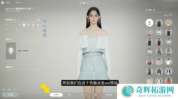 1、打开捏脸工具,在界面下方找到“zoi 预设”选项并点击。