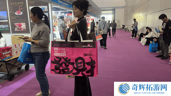 卧兔网络还在展会现场推出了一款创意手拿发财包,成为了展会的一大时尚亮点。这款超大容量的发财包不仅满足了全场卖家的资料收纳需求,还因其独特的设计和实用性而备受追捧,成为了展会上的“网红”单品。