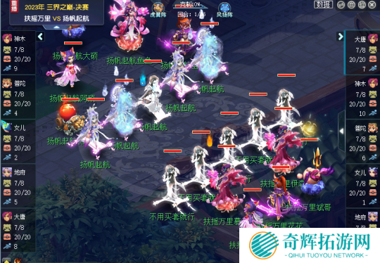 切入战斗,扶摇万里风阵国标被扬帆起航虎阵国标极限大克,但是扶摇万里女儿拿到了全场一速,开场扶摇万里就使用横扫配合荆棘舞试图点杀扬帆起航的神木,但是因为伤害不够导致失败,双方只能先加状态再做准备。