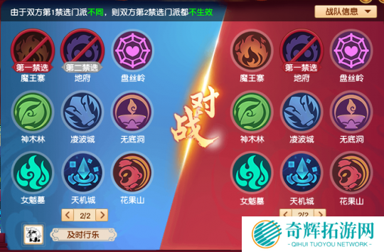 及时行乐第一禁选为魔王,梦幻理财第二禁选为地府,根据规则双方都无法上场魔王和地府,同时第二禁选不生效。