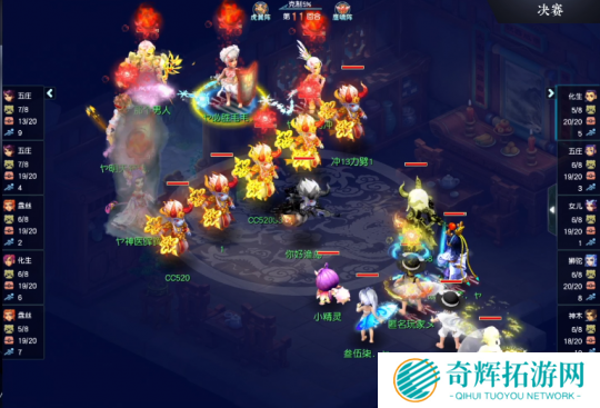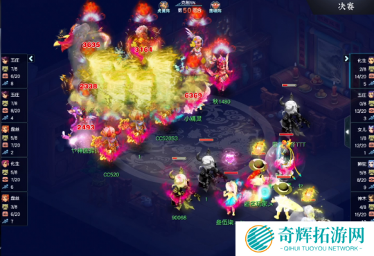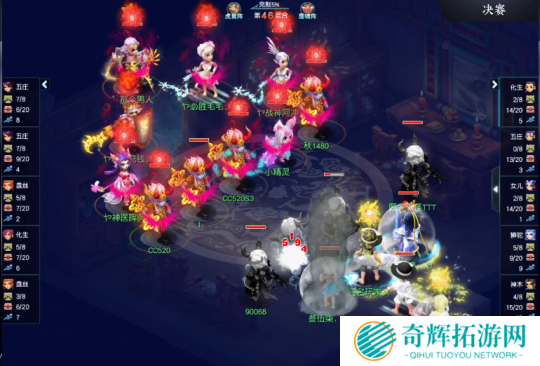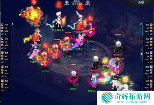 第52回合,明秀园力五庄当前回合被打中大死亡,钓鱼岛神木林琴音三叠最后一下暴击8704点伤害将其送走。