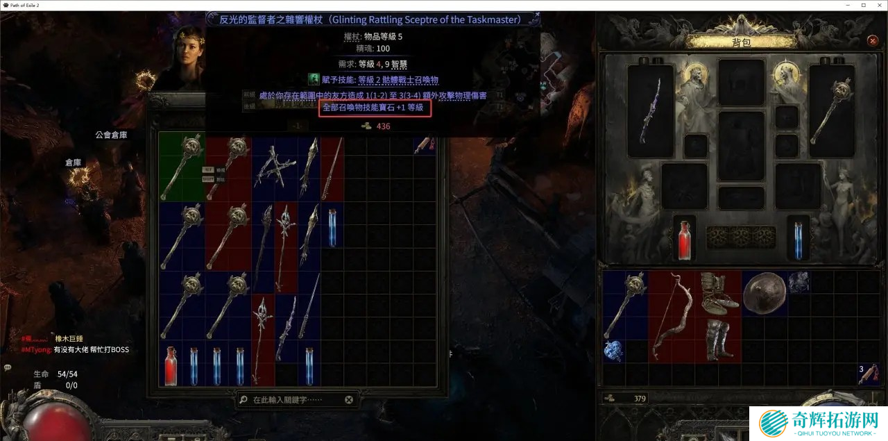 2、这把权杖的关键属性是全部召唤物技能宝石+1,对于召唤流派非常重要。