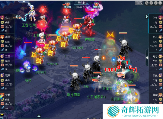 第六回合,对战方给王者之师花果山丢了一个无魂,但是花果山无魂触发嗜血幡,嗜血幡触发漫天,直接将对手一速盘丝点杀,因为对手的无相附加2回合大死亡,所以化生寺还被加了5回合的大死亡状态。