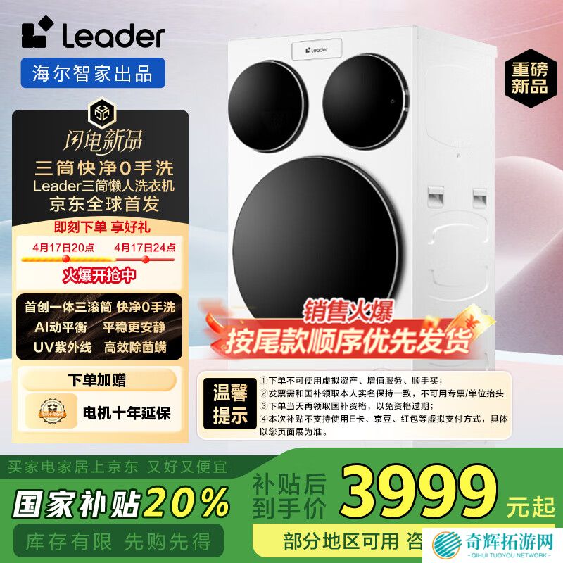 海尔 Leader“全球首款懒人洗衣机”开售:三筒设计,国补价 3999 元起