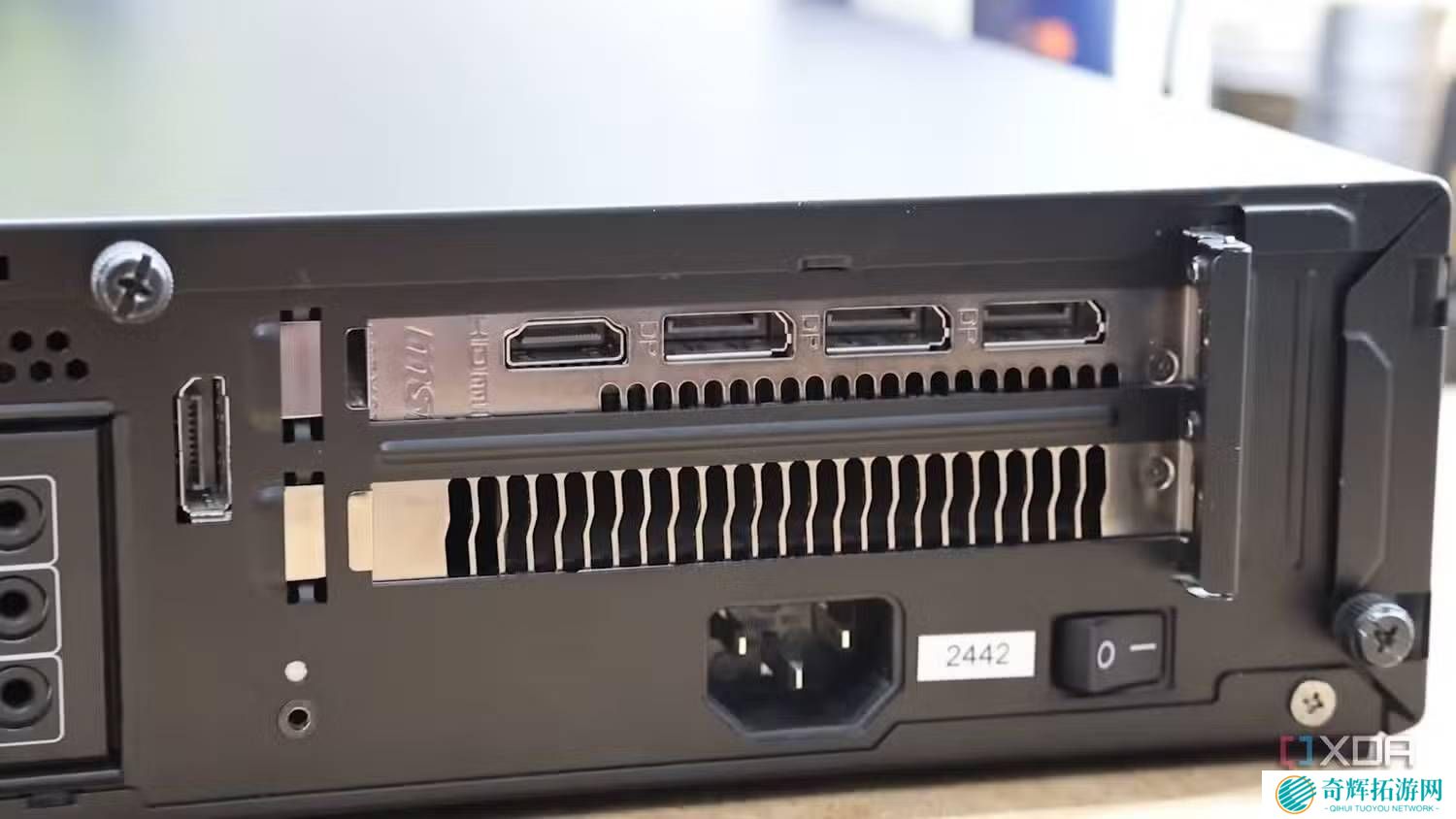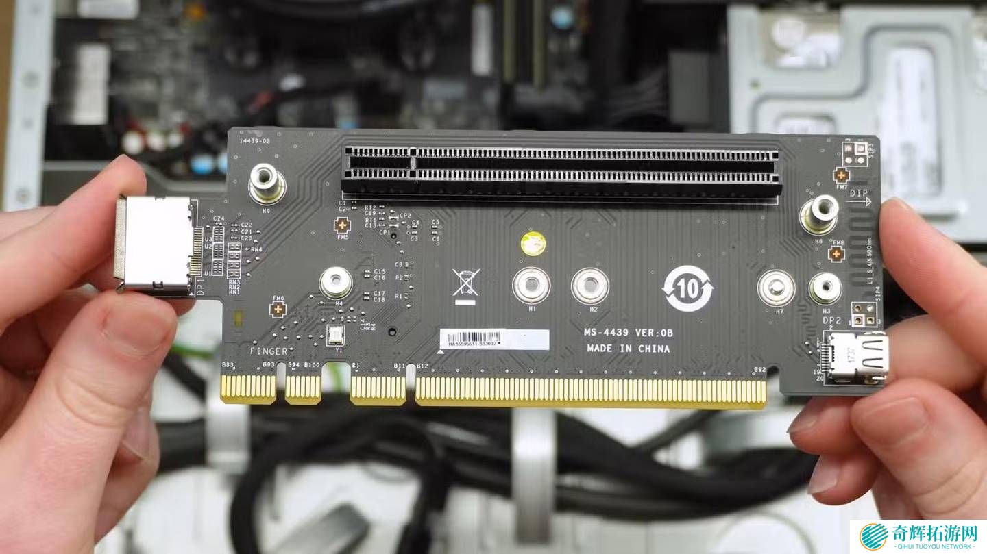 在接口方面,这款原型机同样表现出色。其正面配备了两个USB-A接口和一个支持VirtualLink技术的USB-C接口,可用于连接eGPU外置显卡。机身背面则提供了4个USB-A接口、1个RJ45网口、3个DP接口和1个HDMI接口,满足了用户多样化的连接需求。