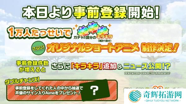 而随著本作手机版正式发表,官方也宣布,自即日起正式展开游戏事前登录预约注册让玩家们进行申请预约。在手机版预约方面,官方将会视预约玩家人数,赠送可以在游戏中用来进行转蛋等功用的不同数量「辉石(キラキラ)」作为特典赠品,一旦预约满一万人,还将宣佈进行《动物朋友3》的短篇动画製作。