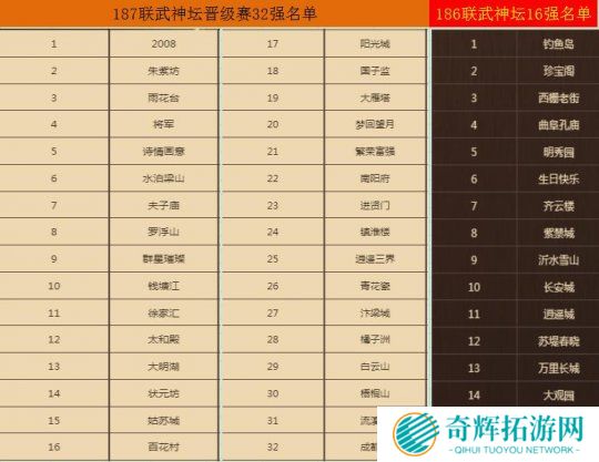 (注意:上届16强自动晋级到积分赛)他们将在下周开始武神坛积分赛角逐16强,让我们拭目以待!
