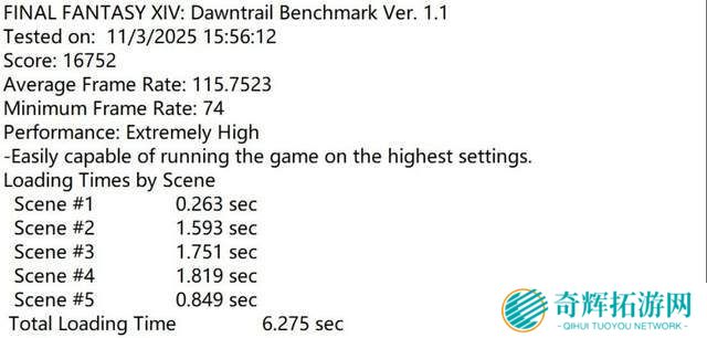 在应用模拟测试中,三星9100 PRO 4TB在PCMARK10完整系统盘测试中得分6331分,带宽为997.95MB/s。在3DMARK存储测试中得分5936分,平均带宽为1008.14MB/s。在《最终幻想:曦光旅路》的Benchmark中,全部转场载入时间仅为6.275秒,相比某PCIe 4.0旗舰级固态硬盘减少了35%。
