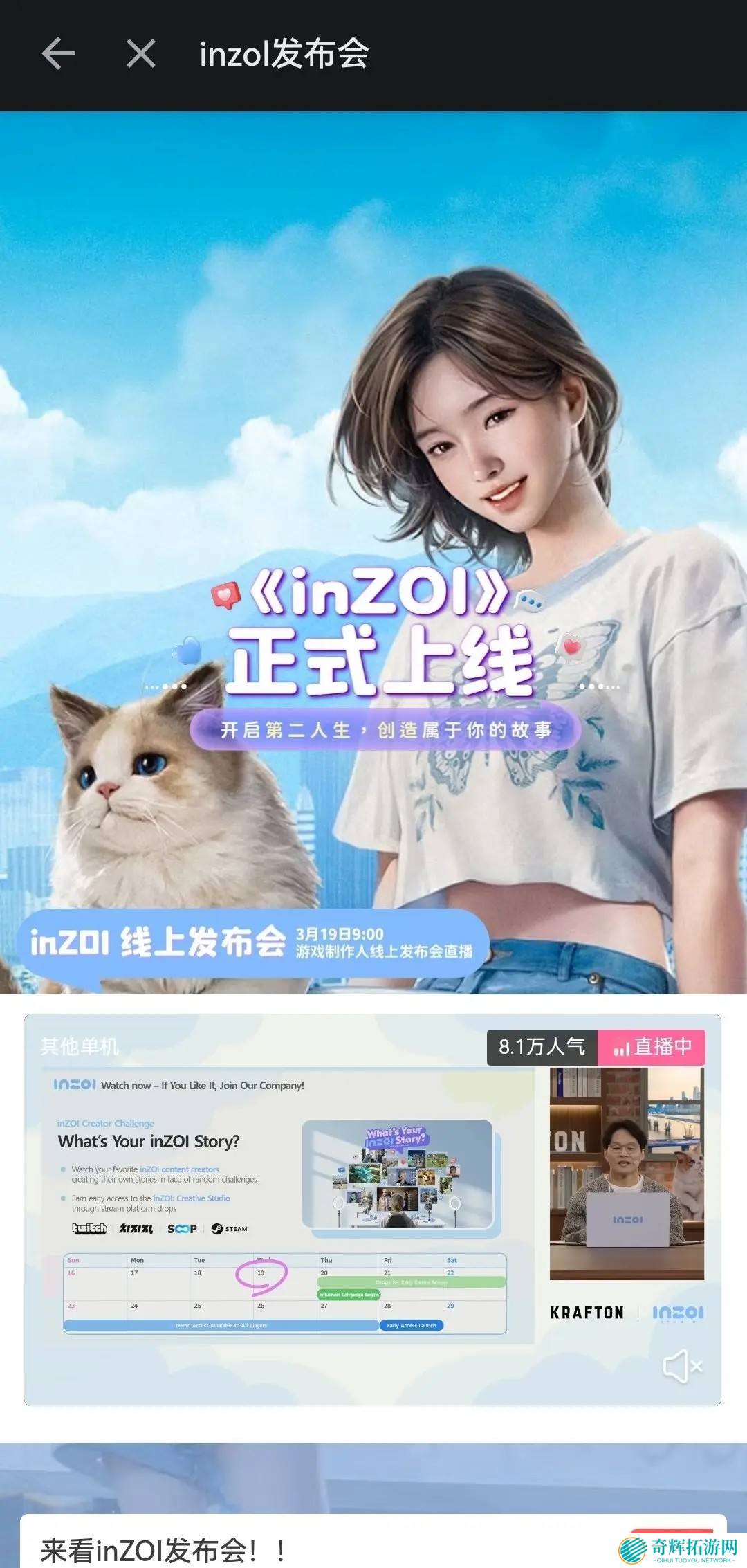 此外,inZOI官方还将在3月19日举办全球线上发布会直播,带来更多新内容和开发者访谈,感兴趣的玩家可前往>>inZOI官方线上发布会-哔哩哔哩直播<<<" target="_blank">>>>inZOI官方线上发布会-哔哩哔哩直播<<<观看!