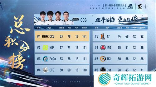 三天过后,PeRo以131分位居榜首,NIP和ZCG分居第2和第3,来自ZCG的ii2666以15个淘汰和2626总伤拿到战神榜榜首。