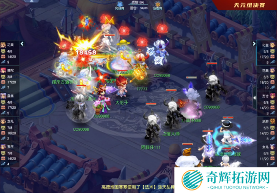 比赛第40回合,曲阜孔庙花果山打出5W多伤害,一波将西栅老街五庄观打死。