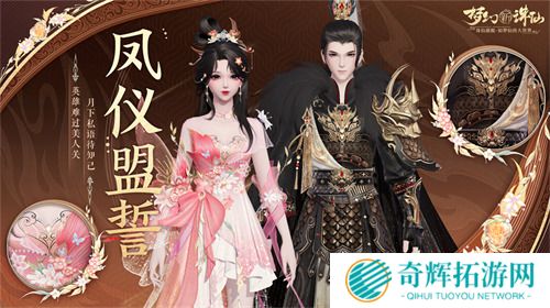 英雄难过美人关,月下私语待知己。全新「时装·凤仪盟誓」设计风格独特,正如花朝节中袒露的真情,全方位展示出英雄的豪迈与美人的温婉双重魅力。本套专属时装特备双人交互「动作·戟舞风云」,更有「飞剑·方天画戟」「背饰·英雄剑」「背饰·美人剑」同步登场,重现前世那纷飞战火中的纠葛,续写英雄与美人的浪漫传奇!