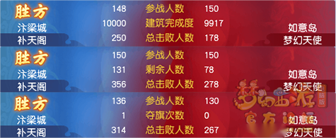 第 27 届帮派联赛 8 强名单已经出炉。左半区对决中,普陀山服务器的【海阔天空】战胜了紫禁城服务器的【RunningMan】;黄鹤楼服务器的【焱灵♂炽炎】战胜了 2008 服务器的【′简简单单、】;汴梁城服务器的【补天阁】战胜了如意岛服务器的【梦幻天使】;蓬莱岛服务器的【中华英雄阁】战胜了龙拳服务器的【′友情岁月 °】。右半区对决中,钱塘江服务器的【天龙会】战胜了南阳府服务器的【′天天开心 °】;镇淮楼服务器的【清歌妙舞】战胜了鼓浪屿服务器的【行云阁】;曲阜孔庙服务器的【天下】战胜了珍宝阁服务器的【※聚贤庄※】;阳光城服务器的【血舞龙城】战胜了再续前缘服务器的【伊路倾风雨】。下面,就带大家一同回顾一下这些精彩对决!