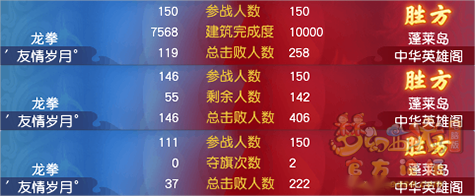 在 16 进 8 的对决中,【中华英雄阁】展现了其强大的凝聚与动员能力,3 天全部 150 人满员出战!将同样拥有优秀历史成绩的【′友情岁月 °】斩于马下,成功晋级 8 强。值得一提的是,在 32 进 16 的对决中,【中华英雄阁】同样是 3 场全部满员出战,着实让人惊叹于其卓越的组织凝聚力。