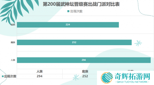 从数据来看,本次晋级赛中化生寺、五庄观、咒师普陀山等门派的出现次数名列前茅,封系方面由五庄、盘丝、女儿统治,辅助性方面则由化生、地府、咒师普陀统治,输出方面则由魔王、狮驼、大唐、神木、凌波、花果等门派。其中,带凌波城出场的大多为三攻阵容,参考价值不大。