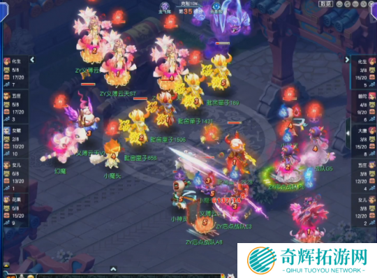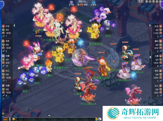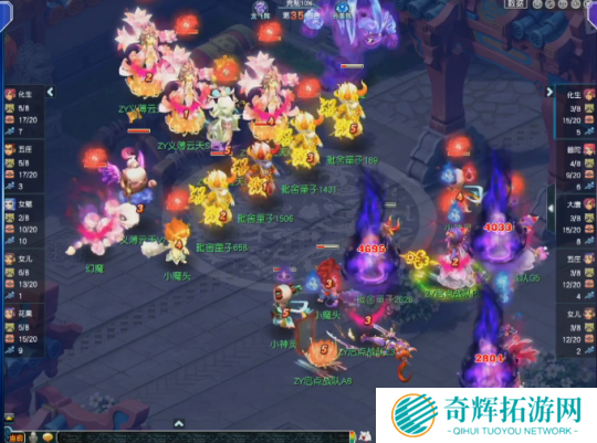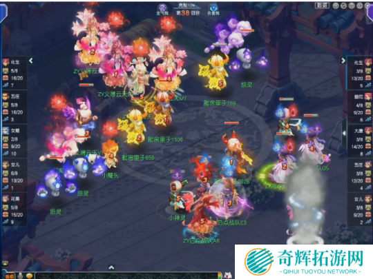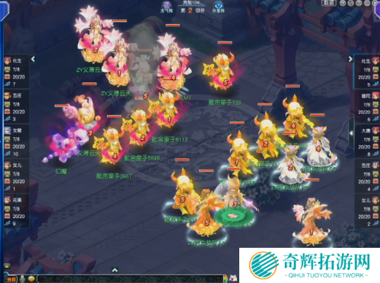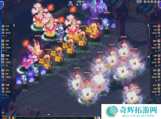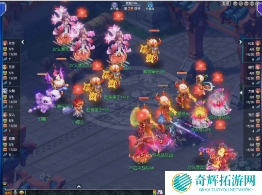 第28回合,面对高额面伤压力,启点战队化生寺丢出无魂,虽然成功命中敌方花果山,但也被对方触发满天花雨套装效果,而且这是义薄云天花果山的第三次满天,直接将伤害拉到极限。