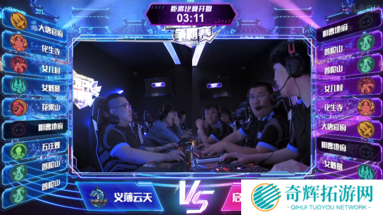 本届《梦幻西游》电脑版全民PK赛赛制为BO1,在经过下午两场比赛后,专业组全国冠军赛将在义薄云天和启点战队展开。义薄云天的指挥为东方、小非、呆瓜、银河、阿七,启点战队则以人间、呼噜猪为主。