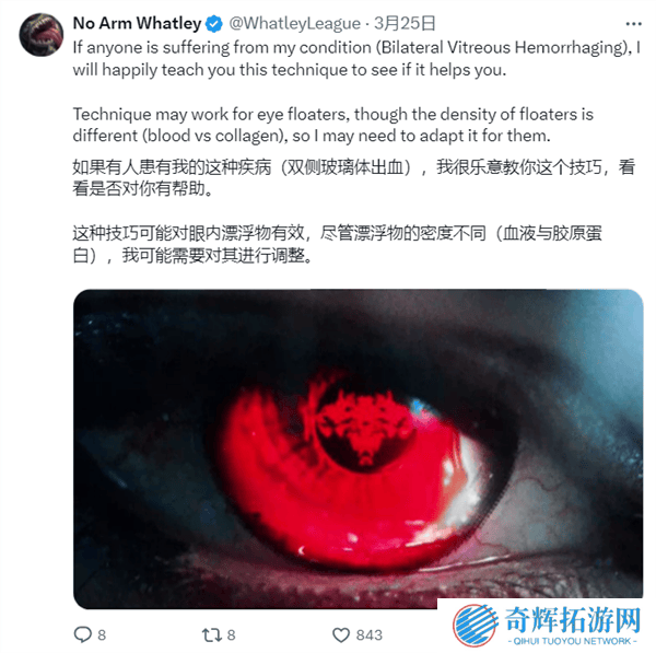 当然,频繁使用这一技巧也给Whatley带来了不小的痛苦。眼部疼痛时常伴随着他,但他依然坚持着。他自嘲这一招有“冷却时间”,需要合理使用。尽管如此,他从未后悔过自己的选择。
