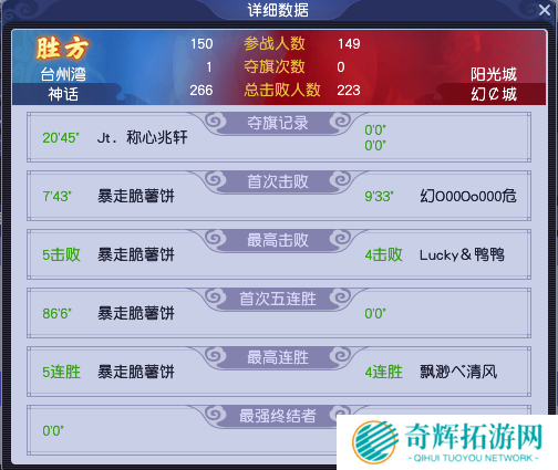 参与第22届帮派联赛总决赛的帮派可不一般,台州湾的【神话】帮派在先负一局的情况下,靠着队伍的出色发挥,以微弱的优势在周六竞技环节的比赛中翻盘【幻¢城】。