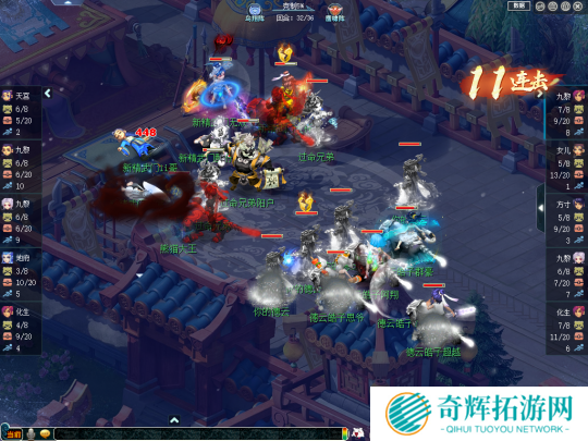 比赛第32回合,德云皓子先发制人,利用女儿村的灵宝封锁新精武门九黎城灵宝,大大降低了对手的点杀威胁。随后,德云皓子的双九黎跟上输出,利用出色的面伤能力带走了新精武门天宫和地府,锁定比赛胜利。