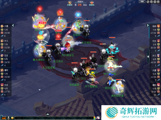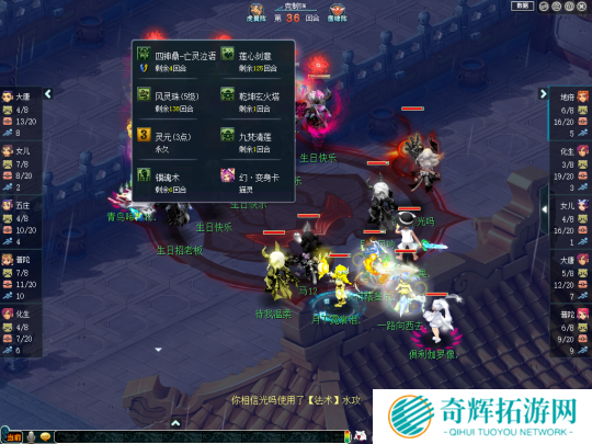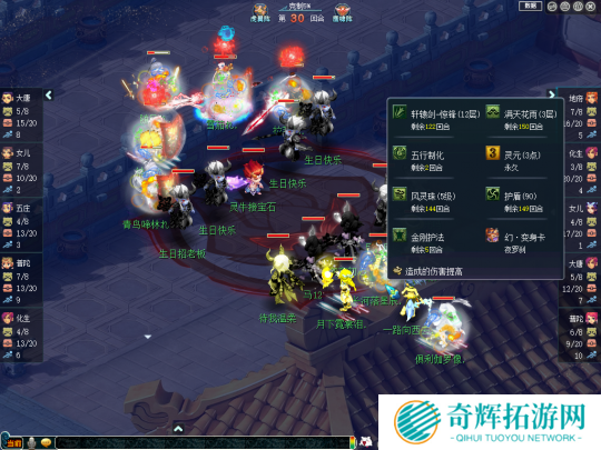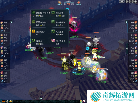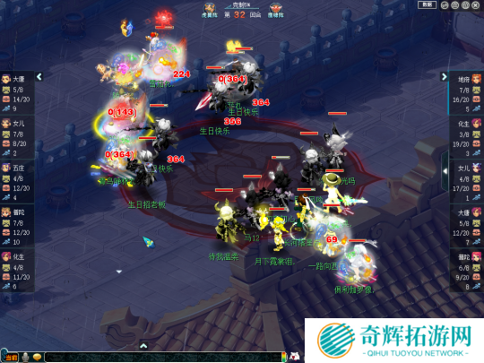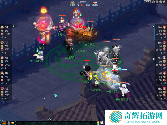 紫禁城在击杀生日快乐大唐官府后,又在第20回合、24回合瞄准生日快乐五庄观、咒师普陀发起点杀,将生日快乐的进攻节奏打乱。而且,丢掉大唐官府的输出能力后,生日快乐几乎没有办法清掉紫禁城的召唤兽。