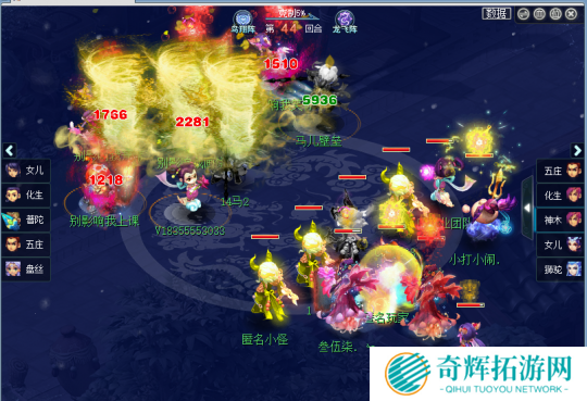 40回合,渔岛掏出一只**力劈,加上战笛后依次劈倒了诗情画意的女儿化生盘丝,诗情画意前期酒已经消耗完毕,无法慈航,最终49回合,不慎落败.