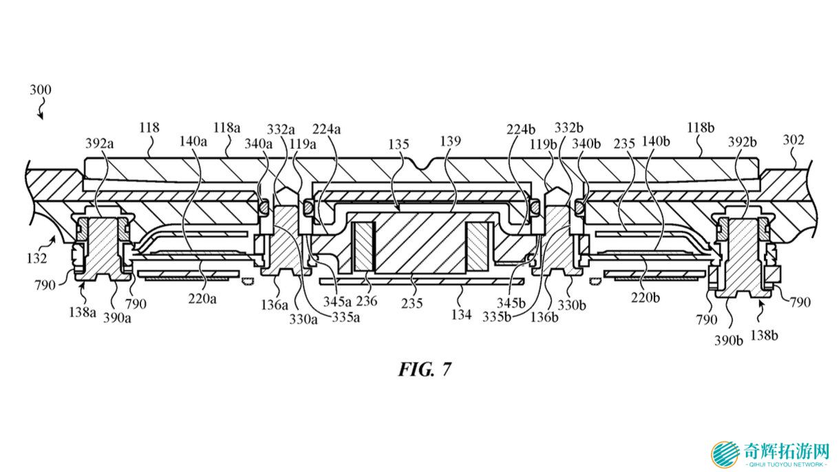 根据专利描述,Bongo 项目的触觉按钮设计依赖于柔性结构和应变计来感知压力变化。一旦检测到按压,电信号会传输至“Bongo Haptic Engine”,通过电磁阻尼电机(由铁磁核心和铜线圈组成)产生振动反馈,与常规 Taptic Engine 的工作原理类似。