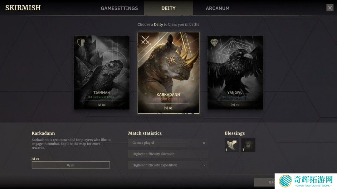 在众多神祇中选择一位,他们的神圣力量将助你踏上旅程。神的祝福会决定你的生死存亡。你可以选择投身于攻击、防御,还是探索其他道路?