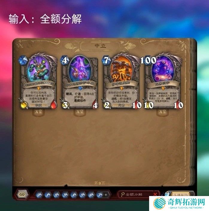 2、全额分解 ➜ 查找因削弱可获得全额奥术之尘补偿的卡牌,想要回收尘的玩家别错过!