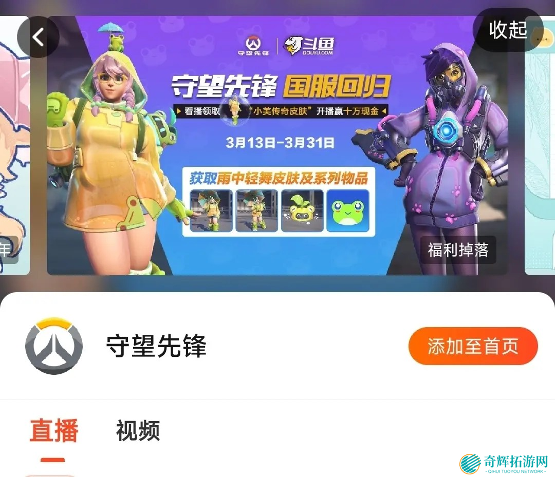 >在页面上找到“守望先锋直播掉宝”活动,并点击进入。