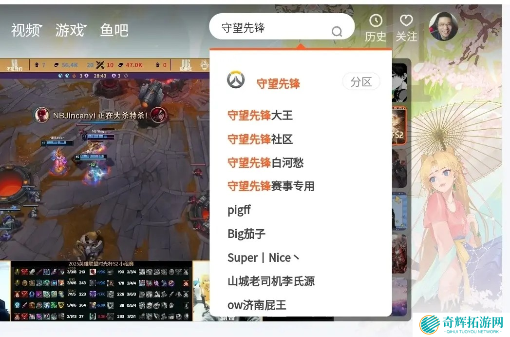 >进入斗鱼官网后,在右上角搜索“守望先锋”,进入守望先锋专区。