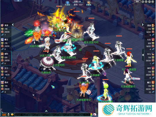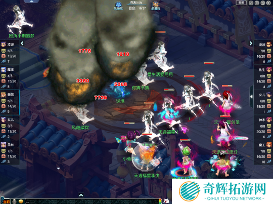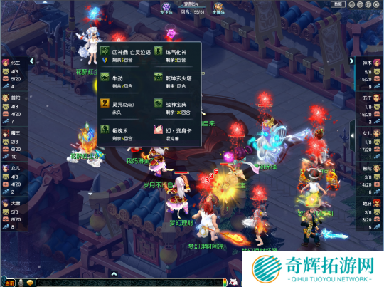 梦幻理财(观战方)则是选用了“神木、五庄、女儿、莲台普陀、地府”组成的点杀阵容,这套阵容可以通过莲台普陀搭配五庄观点灯的方式回复气血,对花醉红尘使用的阵容体系有明显克制。